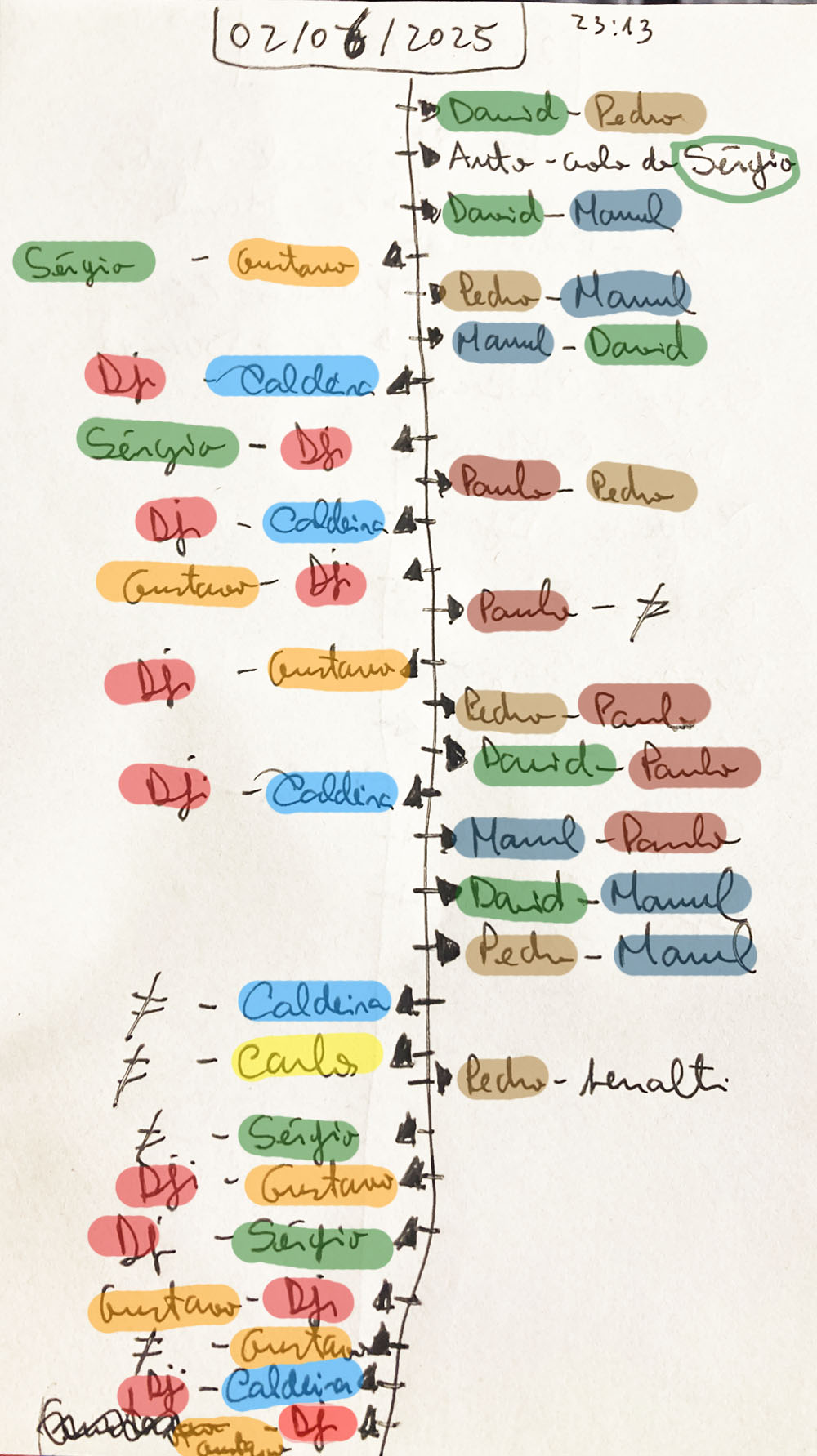 | Alexandre (~Flávio) | 1 | 3.00 | 2/1 | 1/0/0 | V | 3 |